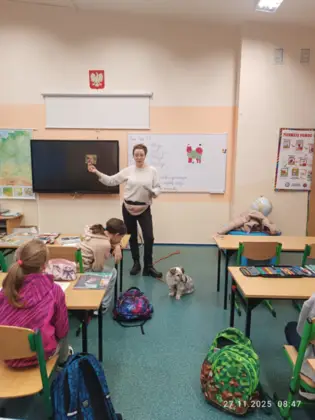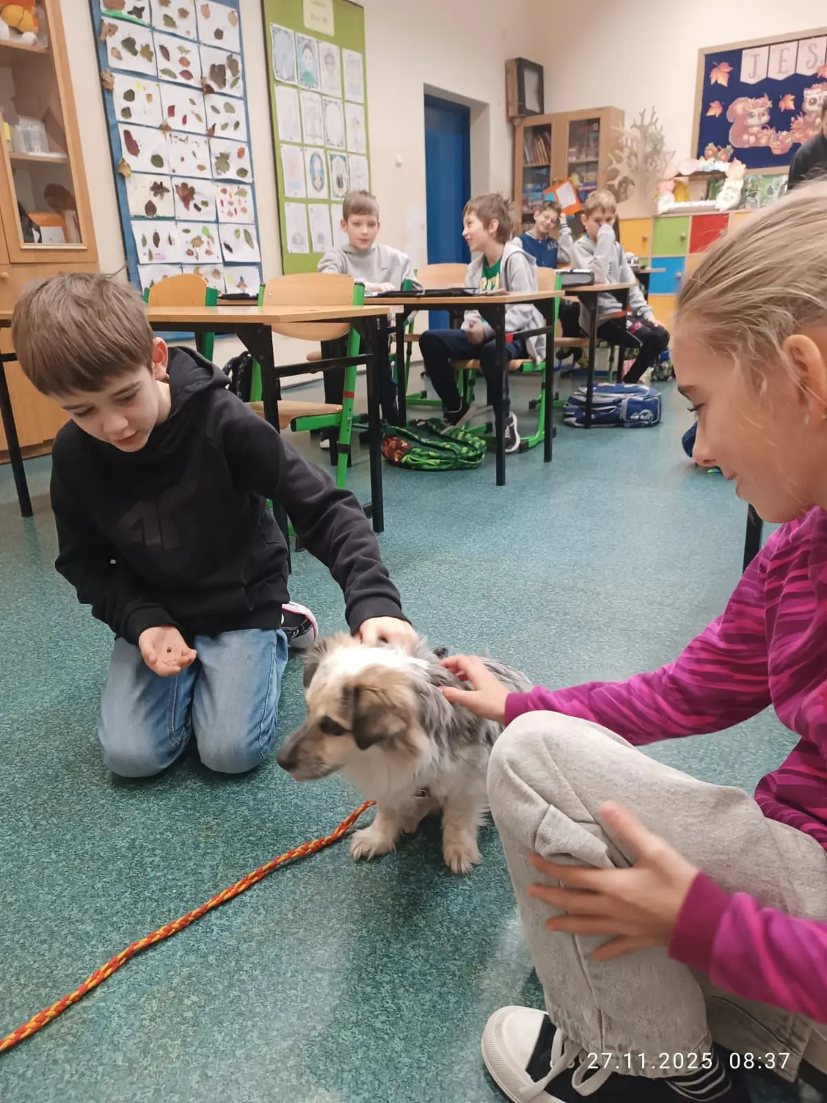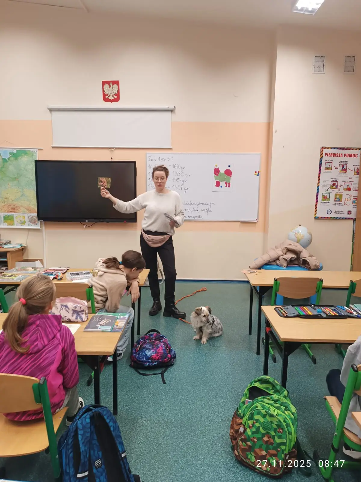 W ramach współpracy ze stowarzyszeniem Zwierzęta Ludziom przeprowadzono cykl zajęć edukacyjnych pt. „Psia lekcja”. Uczniowie poznali podstawy komunikacji psów, zasady odpowiedzialnej opieki nad zwierzętami oraz znaczenie terapii z ich udziałem. Zajęcia wzbogaciły wiedzę dzieci i młodzieży, a jednocześnie uczyły wrażliwości i szacunku.
