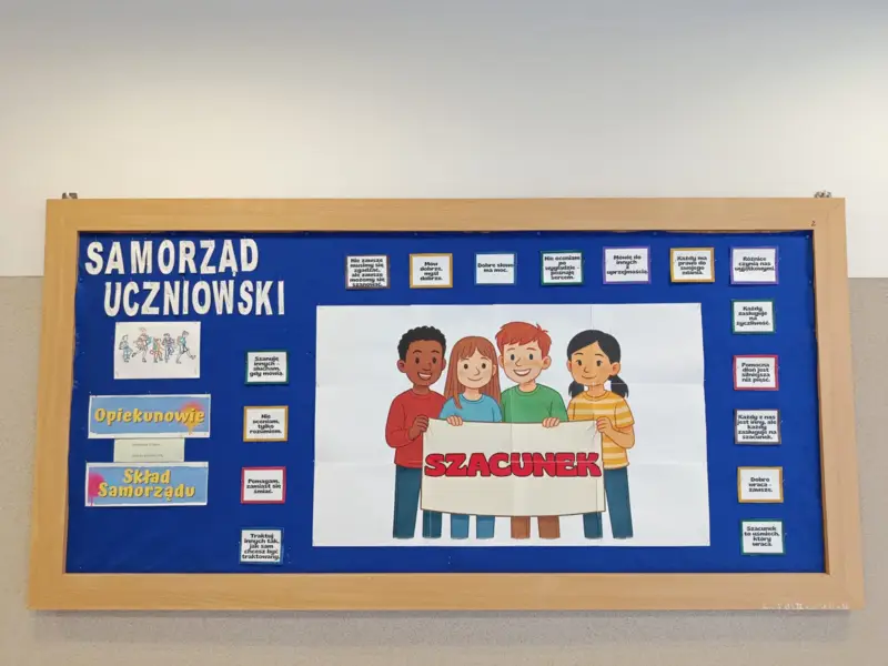 W szkolnym holu przygotowano tematyczną gazetkę informacyjną, poświęconą relacjom rówieśniczym, trudnym sytuacjom społecznym i sposobom radzenia sobie z konfliktami. Uczniowie mogli dowiedzieć się, jak budować przyjaźń, reagować na przejawy agresji rówieśniczej i gdzie szukać pomocy, gdy pojawią się trudności.