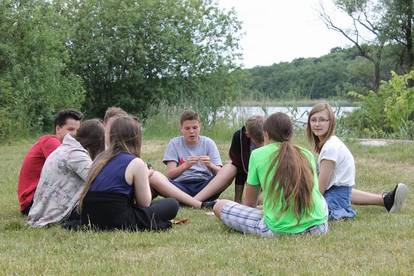 Na ten dzień wszyscy czekaliśmy z niecierpliwością. Wcześnie rano zebraliśmy się pod szkołą, by wyruszyć w kilkugodzinną podróż do naszych przyjaciół z Niemiec. Podróż minęła szybko, a na miejscu zostaliśmy ciepło przywitani oraz poczęstowani ciastem upieczonym przez rodziców naszych niemieckich przyjaciół - znaliśmy się już z poprzedniego spotkania, więc czuliśmy się bardzo swojsko. Byliśmy też bardzo zadowoleni, że nasz ośrodek leży nad jeziorem. Poznawaliśmy okolicę, integrowaliśmy się i dobrze się przy tym bawiliśmy.