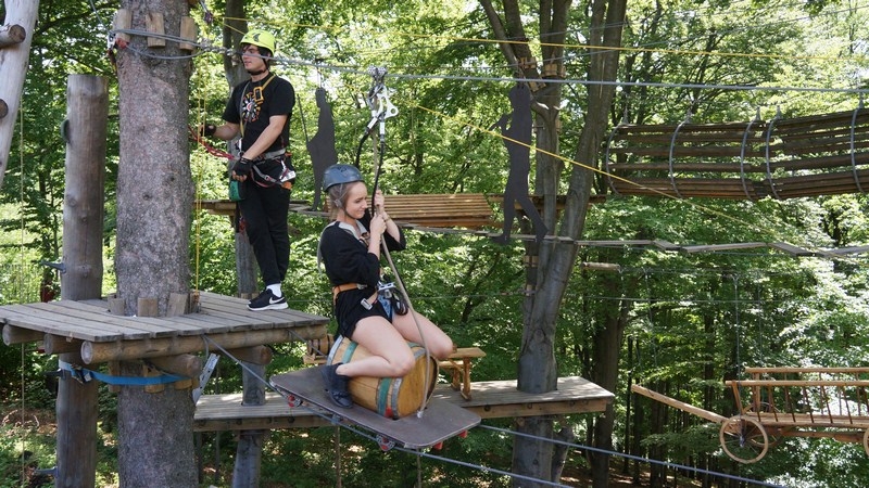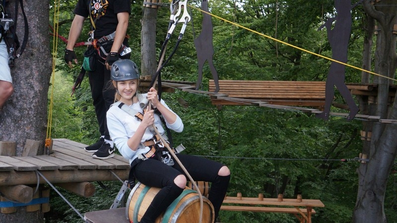 Kolejnego dnia uczniowie zmagali się z własnymi lękami i słabościami pokonując ścieżki w parku linowym, a następnie uczyli się współpracy w grupie. Stawiane przed nimi zadania, jak chociażby pokonanie sieci pajęczej w myśl określonych reguł, można było spełnić, tylko poprzez zaangażowanie wszystkich członków grupy, wykorzystując wcześniej przemyślaną i przedyskutowaną taktykę i ostatecznie umiejętnie realizując założony plan. Młodzież poznała przy tym zasady odpowiedzialności zbiorowej i indywidualnej. Po takich doświadczeniach gimnazjaliści mogli zająć się grupowo zadaniem projektowym - przygotowaniem polsko-niemieckiego zielnika. Uczniowie szukali roślin, klasyfikowali je, nazywali, a przy tym - dobrze się bawili.