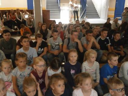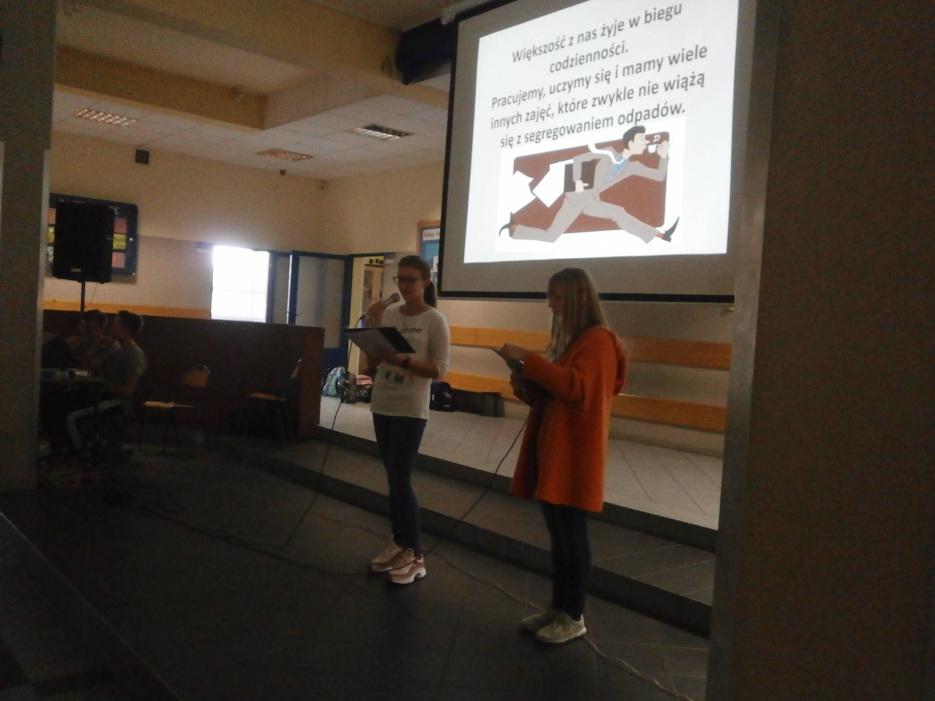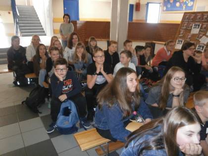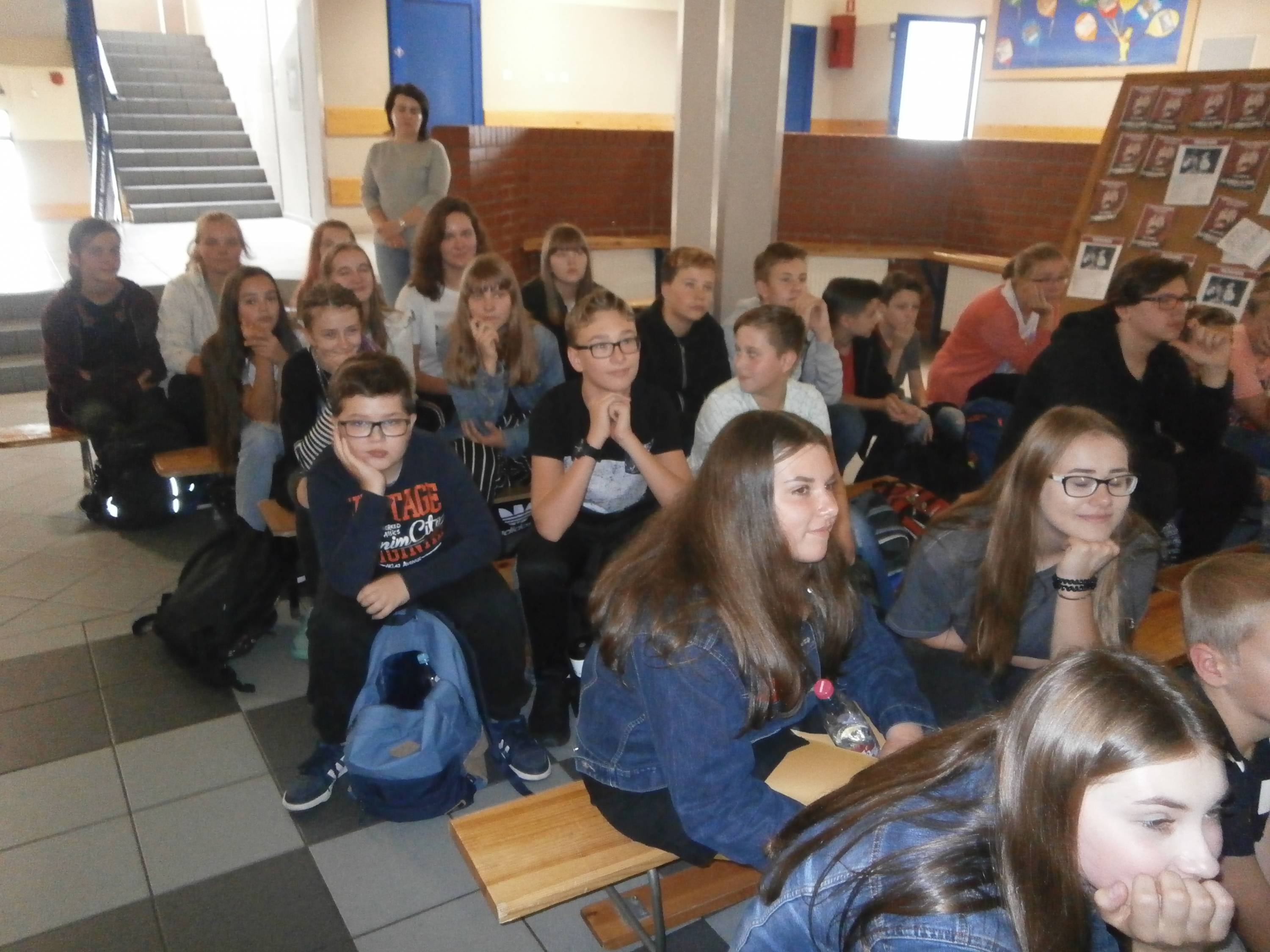 W dniu 24 września 2019 r. uczniowie naszej szkoły uczestniczyli w prelekcji ekologicznej na temat segregacji śmieci. Hasłem przewodnim zajęć było "NIE ŚMIECIMY - SPRZĄTAMY - ZMIENIAMY!". Podczas wzbogaconego slajdami przekazu, poznaliśmy zagrożenia związane z brakiem odpowiedzialności za stan środowiska naturalnego. Dowiedzieliśmy się jak racjonalnie gospodarować wodą, energią i odpadami. Zrozumieliśmy, że korzyści z segregacji śmieci są ogromne i jeśli chcemy żyć w czystym środowisku sami powinniśmy o nie zadbać.