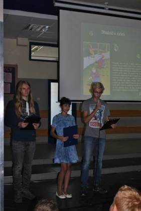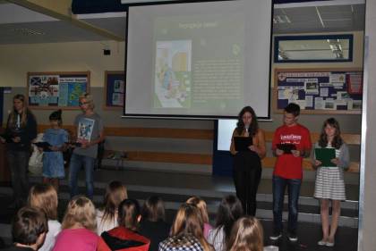 W formie prezentacji multimedialnej „ABC młodego ekologa” przedstawili wpływ zanieczyszczeń na środowisko oraz opowiedzieli w jaki sposób możemy zadbać o czystość naszej planety. Celem prelekcji było kształtowanie wśród młodzieży poczucia odpowiedzialności za stan środowiska w najbliższym otoczeniu, na takim poziomie, aby chcieli oni aktywnie uczestniczyć w działaniach zmierzających ku wyrobieniu postaw i zachowań proekologicznych.