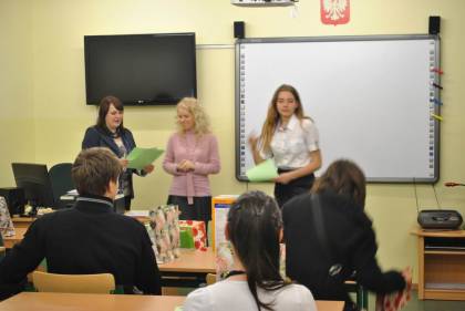 Po części pisemnej konkursu uczniowie Gimnazjum nr 2 w formie prezentacji multimedialnej wygłosili interesującą prelekcję dotyczącą oszczędzania energii.