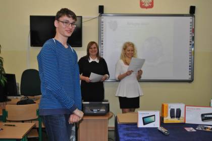 Wszyscy uczestnicy konkursu otrzymali atrakcyjne nagrody w postaci sprzętu elektronicznego. Dyrekcja Gimnazjum nr 2 i organizatorzy konkursu składają serdeczne podziękowanie sponsorowi za ufundowanie cennych nagród.