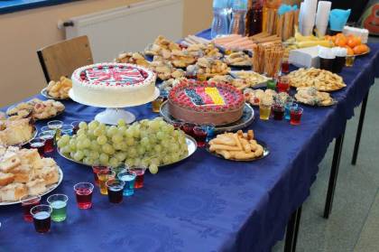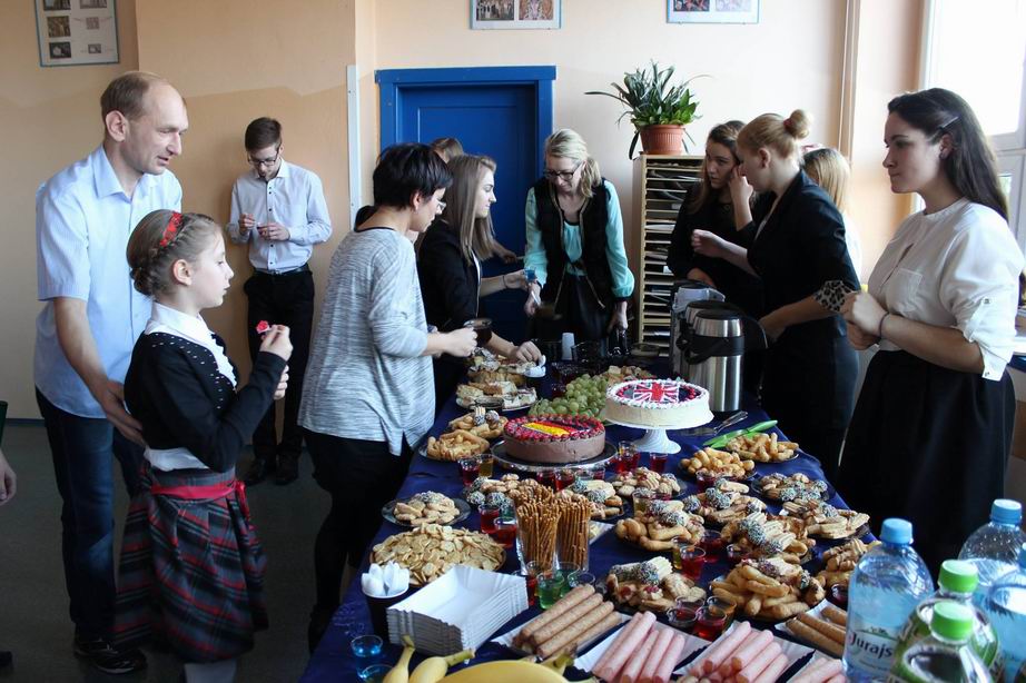 Oprócz zmagań językowych uczestnicy mieli okazję rozejrzeć się po szkole i skorzystać z poczęstunku przygotowanego przez uczniów i rodziców uczniów Gimnazjum nr 2.