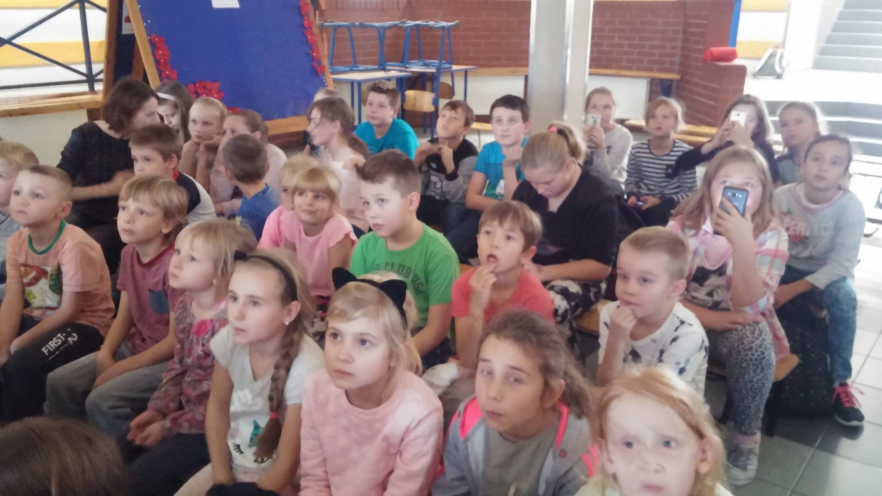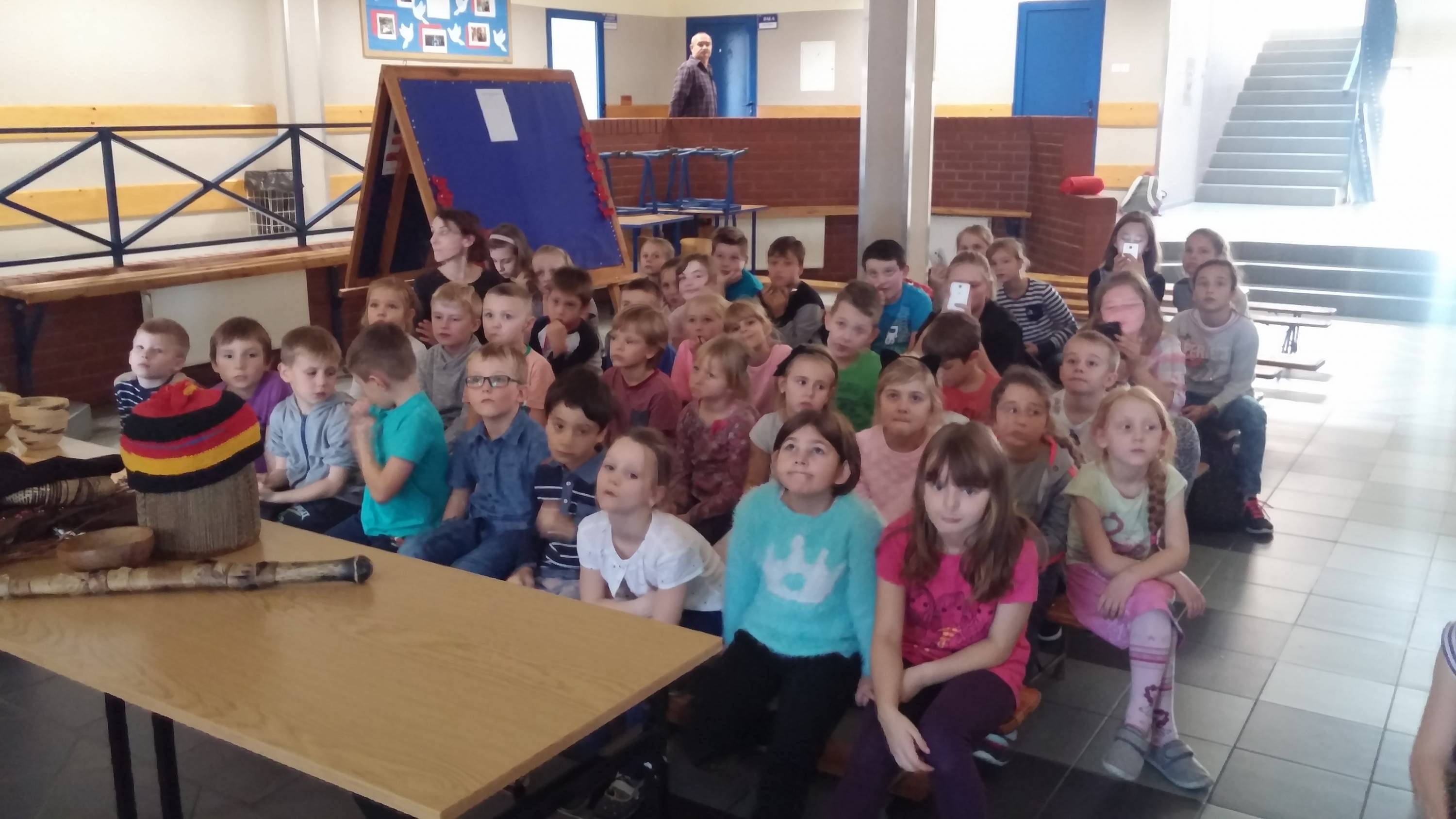 Bardzo zaciekawiły nas informacje dotyczące naszych afrykańskich rówieśników. Podróżnik opowiedział o wizycie w szkole na dalekiej prowincji. Dowiedzieliśmy się, że tamtejsze dzieci bardzo lubią chodzić do szkoły. Dziwiło nas, że w jednej klasie mogą znaleźć się uczniowie w różnym wieku i nie jest to różnica paru, ale nawet kilku lat! Dwa słowa, które słyszał najczęściej: to farandżi, czyli biały oraz karmela, czyli cukierki. Pan Bolesław opowiadał o tym, że Afryka pełna jest dzieci, które od przyjeżdżających farandżi pragną dostawać cukierki. Smutne było to, że nasi rówieśnicy nie mają tak łatwego dostępu do słodyczy jak my dzisiaj i chociaż przyjeżdżający zawsze zabierają ze sobą karmela, to zawsze jest to zbyt mała ilość, by można obdzielić wszystkie dzieci.