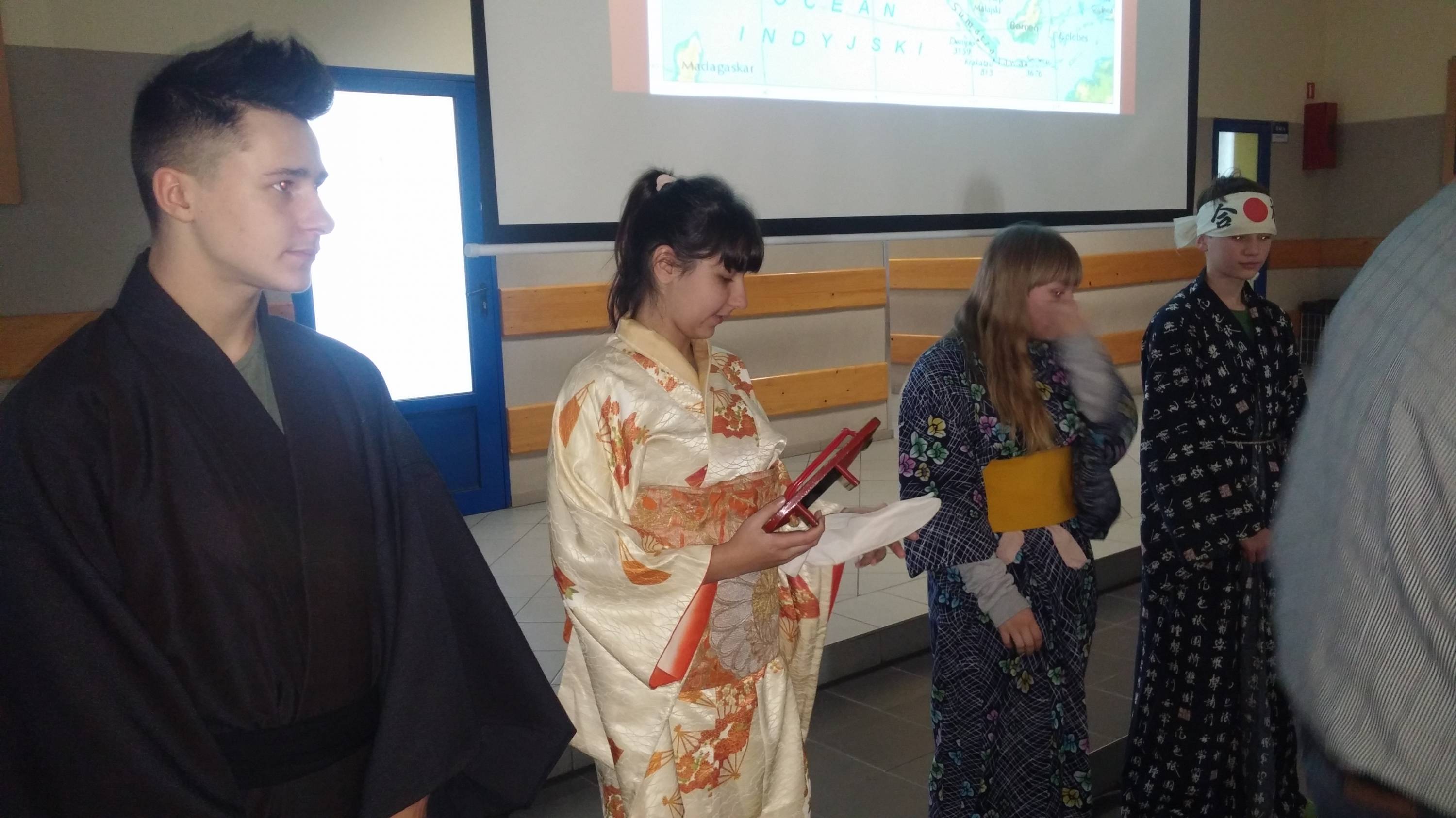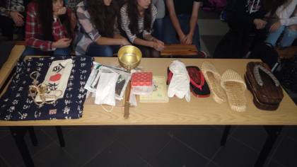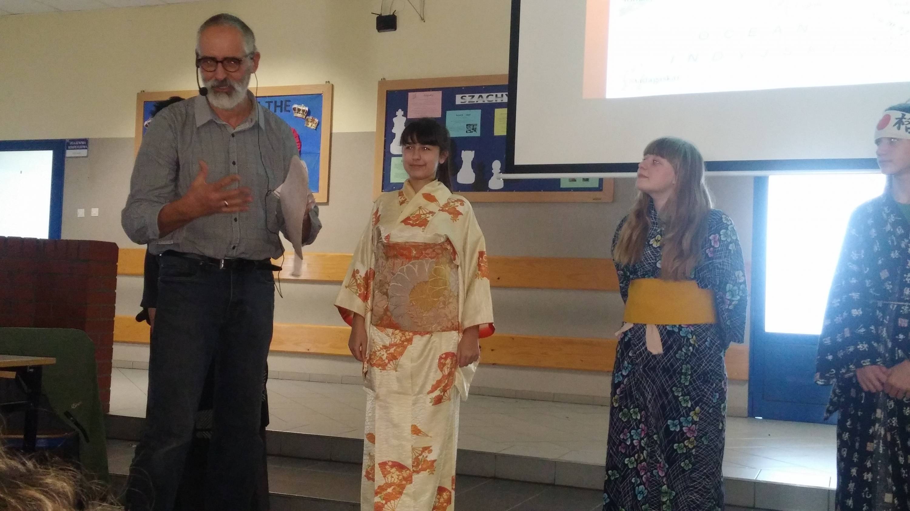 Opowieść o Japonii ubarwiona była prezentacją kimon, przyrządów do pisania, fotografii i wielu ciekawych pamiątek.