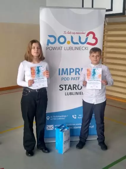W dniu 24 kwietnia, w Szkole Podstawowej im. Jana Pawła II w Psarach, uczniowie naszej szkoły odebrali dyplomy oraz nagrody. Odnieśli sukces w Powiatowym Konkursie Fotograficznym pt. „Dzieło człowieka na tle otaczającej nas przyrody”. Podczas uroczystej akademii z okazji Dnia Ziemi nagrodę za zdobycie I miejsca odebrała Tosia z klasy 6. Wyróżnienie trafiło do rąk Zbyszka z klasy 4.