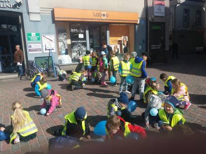 4 kwietnia 2018 roku najmłodsi uczniowie Szkoły Podstawowej nr 2 uczestniczyli w Światowym Dniu Autyzmu. Wszyscy uczniowie zobowiązani byli do posiadania niebieskich elementów odzieży, niebieskich baloników i transparentu dotyczącego akcji. Niebieska kreda pomogła uczniom w pomalowaniu lublinieckiego Rynku na niebiesko. Opiekę w trakcie akcji sprawowały wychowawczynie klas pierwszych-Katarzyna Małek i Barbara Jonek.
