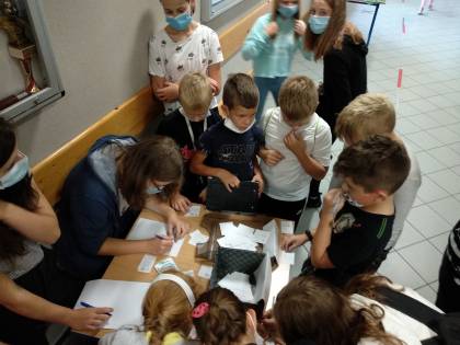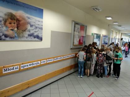 Światowy Dzień Tabliczki Mnożenia odbywał się w naszej szkole po raz pierwszy. Akcja ta miała miejsce 2 i 5 października. Pierwszy etap polegał na rozwiązywaniu zadań z wykorzystaniem tabliczki mnożenia w klasach. Miało to na celu przypomnienie i utrwalenie tabliczki mnożenie. Uczniowie mieli też możliwość sprawdzenia swojej wiedzy na przerwach. Losowali karteczki z pięcioma przykładami, które od razu rozwiązywali. Dla osób które poprawnie rozwiązały wszystkie przykłady przygotowano odznaki oraz informację o tym, gdzie będzie się odbywał dodatkowy konkurs matematyczny.