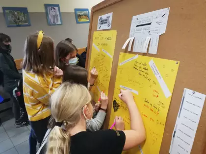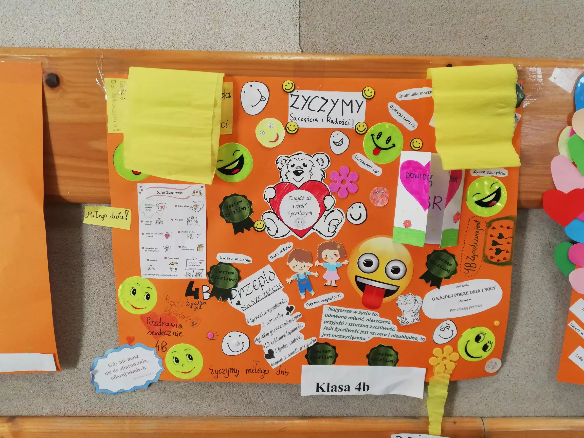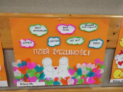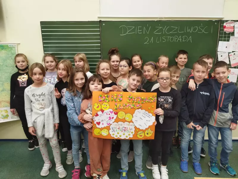 W listopadzie obchodzi się dwa ważne święta : 16 listopada Dzień Tolerancji, 21 listopada Dzień Życzliwości. My również postanowiliśmy przyłączyć się do obchodów tych świąt i ogłosiliśmy w naszej szkole „Tydzień życzliwości”- profilaktyka prawidłowych relacji. Zarówno nauczyciele jak i uczniowie aktywnie brali udział w atrakcjach każdego dnia. Na lekcjach wychowawczych uczniowie wspólnie omówili temat oraz przygotowani plakaty, które biorą udział w konkursie. Na zwycięzców czekają nagrody. W czasie przerw każdy mógł napisać lub przykleić łapkę z miłym słowem dla innych. Po szkole krążyły miłe cytaty. Nasz radiowęzeł zobowiązał się do odtwarzania samych radosnych piosenek. Powstała lista utworów. Mogliśmy sami pisać życzliwe słowa i przekazywać je innym. Młodsi uczniowie malowali wspólnie piękne obrazy na folii ucząc się współpracy, współdziałania i tolerancji na różne pomysły. Do organizacji tego przedsięwzięcia włączyli się psycholog, pedagog oraz Samorząd Szkoły. Dziękujemy wszystkim za udział.
