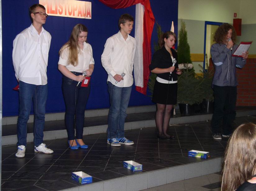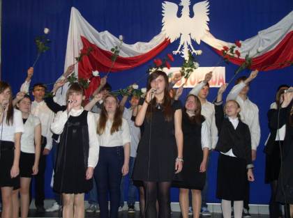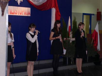 Z okazji Święta Odzyskania Niepodległości w Gimnazjum nr 2 odbyła się uroczysta akademia poświęcona historycznym wydarzeniom sprzed lat. Uczniowie recytowali najpiękniejsze patriotyczne poezje polskich poetów. Występy artystyczne przeplatane były pieśniami żołnierskimi. Akademię przygotowała mgr Bogumiła Majewska i mgr Grażyna Gerhards.