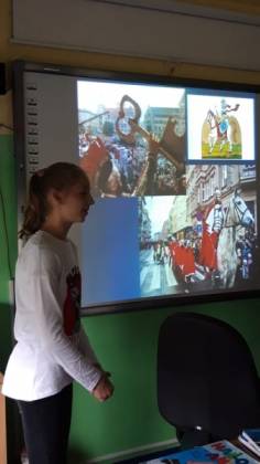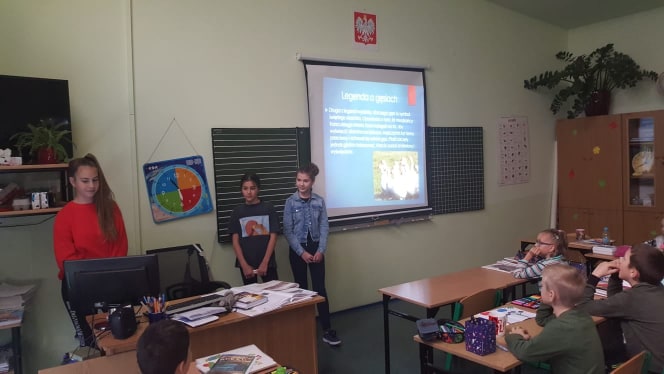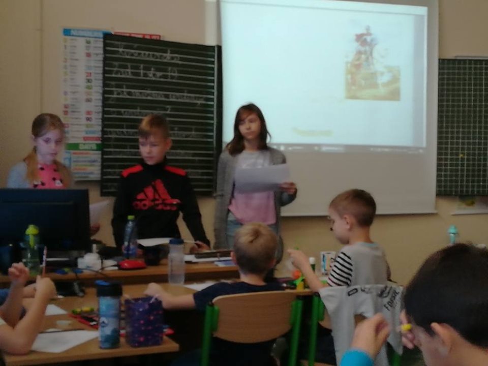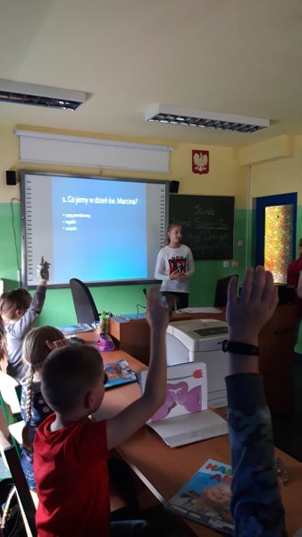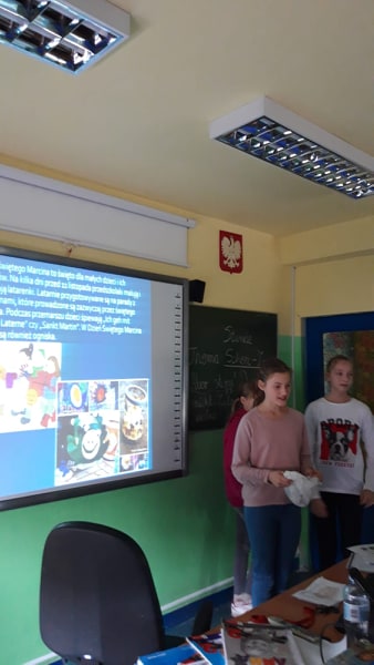 W dniu dzisiejszym uczniowie klasy 6A, w ramach zajęć z języka niemieckiej mniejszości narodowej, przygotowali prezentację na temat św. Marcina i tradycji z nim związanych. Prezentację obejrzeli uczniowie klas 1,2 i 3. Następnie, za prawidłowe odpowiedzi na pytania nagradzani byli słodkim upominkiem.
