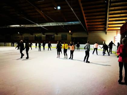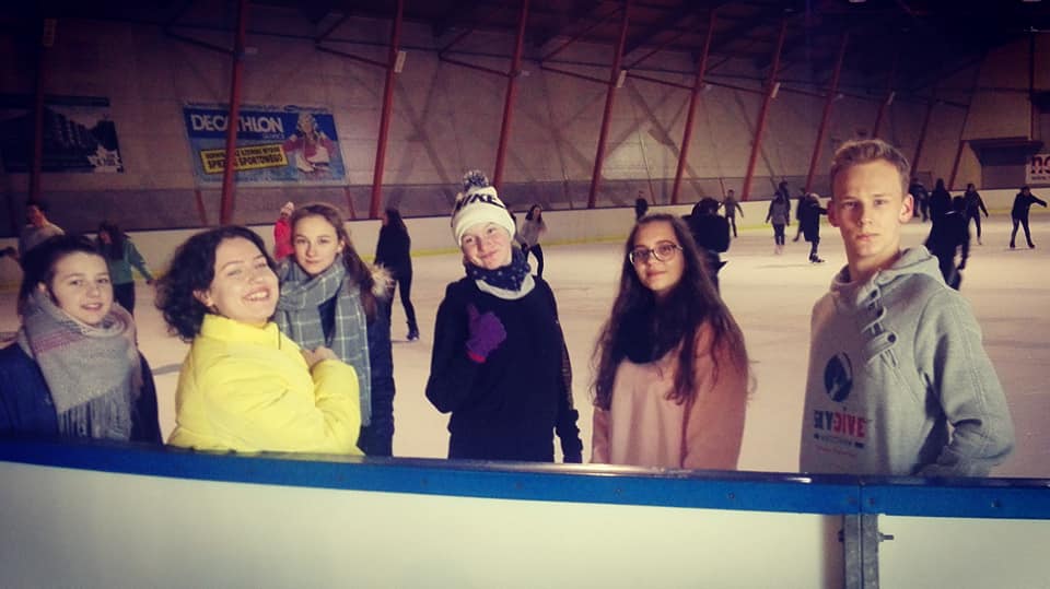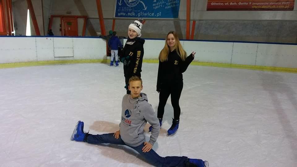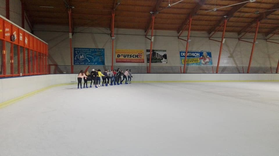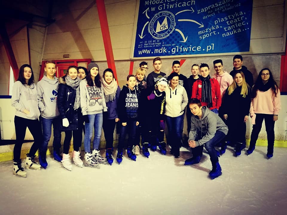 W piątek pod opieką Anny Świtek oraz Joanny Brodowy nasi uczniowie spędzili miło czas na lodowisku w Gliwicach. Jak się okazało tafla lodowiska była bardzo śliska. Część uczniów radziła sobie całkiem dobrze, ale byli i tacy, którzy stawiali pierwsze kroki na łyżwach. Mimo licznych upadków i trudności z utrzymaniem równowagi nikt się nie poddawał i wszyscy podnosili się szybciej niż upadali. Oczywiście ci, dla których jazda na łyżwach nie była niczym trudnym wykazali się postawą koleżeńską i z wielkim zaangażowaniem pomagali i uczyli początkujących. Trzeba przyznać, że ich metody nauczania przyniosły dobre rezultaty, ale i uczniowie byli pojętni i ambitni. Jak mówią słowa znanej piosenki: "Najtrudniejszy pierwszy krok." a potem to już była klasa mistrzowska!!!