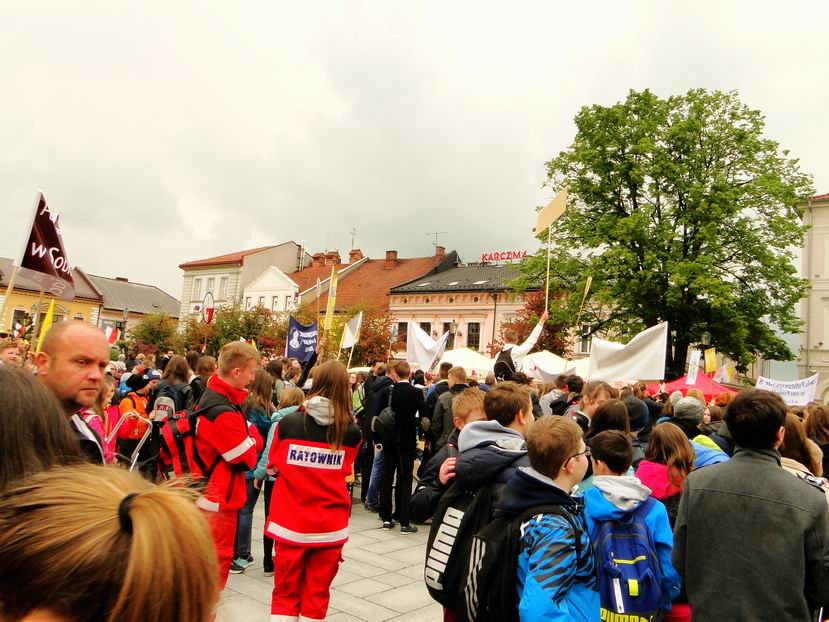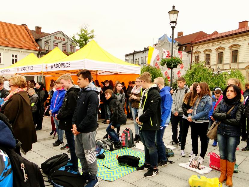 18 maja nasza młodzież brała udział po raz kolejny w dorocznym Zjeździe Rodzin Szkół im. Jana Pawła II w Wadowicach. Zjazd, jak co roku, odbył się w kolejną rocznicę urodzin Papieża. Wyjazd zorganizowany został wspólnie z zaprzyjaźnioną szkołą im. Św. Jana Pawła II w Dobrodzieniu. Wspólnie z kilkunastoma tysiącami osób z całej Polski uczestniczyliśmy w Mszy Św., zwiedzaliśmy miasto, kupowaliśmy pamiątki. Nie zabrakło również czasu na „papieskie kremówki” na rynku wadowickim.