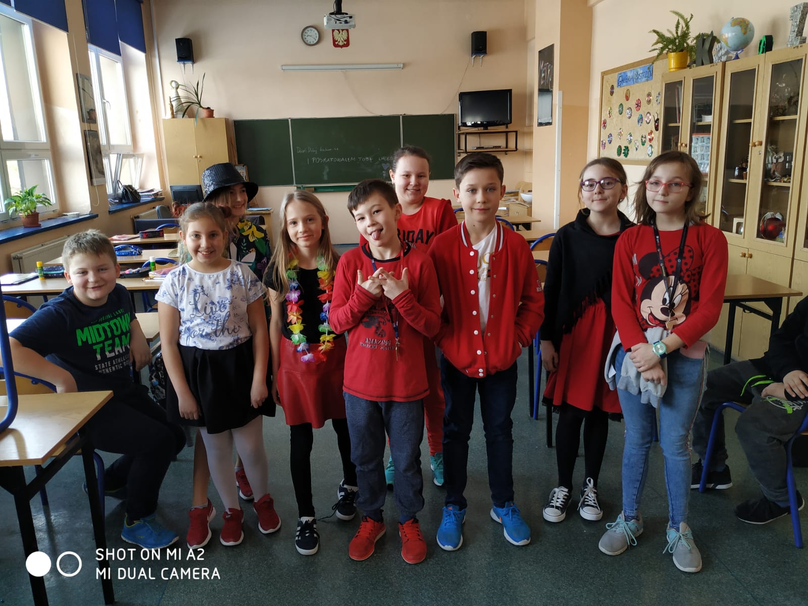W tym roku nieco wcześniej, bo już 8 lutego (przed feriami) zaplanowaliśmy obchody tego święta. Oprócz muzyki miłosnej towarzyszyły nam także wypieki walentynkowe w kształcie serduszek lub w czerwonym kolorze. Wszechobecny był kolor czerwony w uczniów ubiorze. Największą popularnością cieszyła się tym razem poczta walentynkowa - miłosnym listom nie było końca. Romantyczna atmosfera była podtrzymana w trakcie wieczoru "Love is all around", gdzie obejrzeliśmy miłosne filmy. Impreza została zaplanowana i przygotowana przez Samorząd Uczniowski.