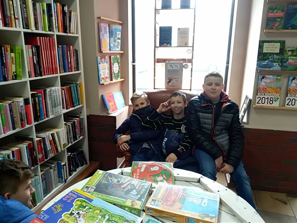 Dzięki współpracy z rodzicami, klasa 7b gościła z wizytą w Księgarence przy ul. Mickiewicza w Lublińcu, gdzie uczniowie w ramach preorientacji zawodowej mogli z bliska przyjrzeć się i zapoznać z pracą w księgarni, jak i prowadzonym w niej antykwariacie. Dowiedzieli się wielu ciekawych informacji i rzeczy, mieli możliwość obejrzenia nowych, jak i bardzo starych egzemplarzy książek, które nie pozwoliły niektórym uczniom oderwać od nich oczu. Po godzinnej lekcji w księgarni, uczniowie zadowoleni i bogatsi w wiedzę, wrócili na zajęcia do szkoły.