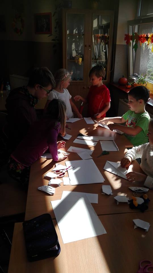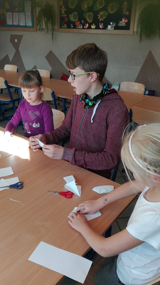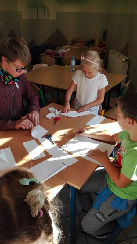 Często ich nie widać, pracują cicho, bez rozgłosu, ale są skuteczni. Wolontariusze naszej szkoły już w akcji. Przedstawiamy pierwszego z nich: Remigiusz uczeń klasy drugiej gimnazjalnej uczy swoich mlodszych kolegów sztuki origami. W dniu dzisiejszym odbyły się pierwsze zajęcia. Jak widać pierwszaki doskonale sobie radzą, a Remek to świetny nauczyciel.