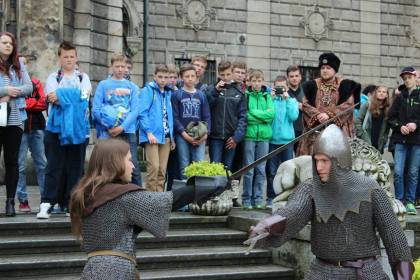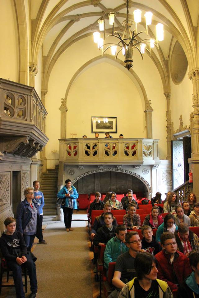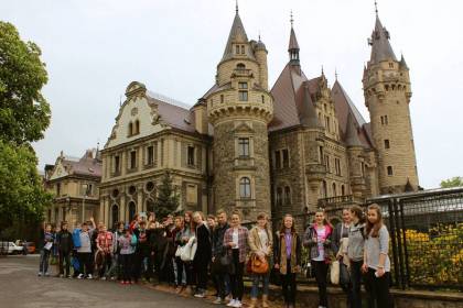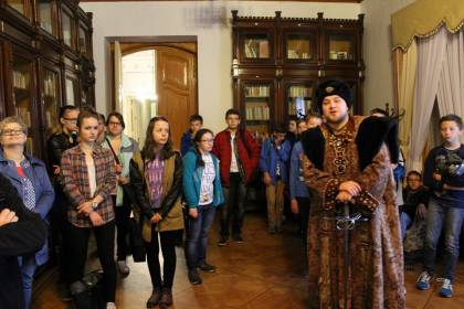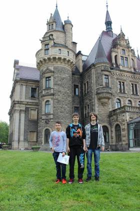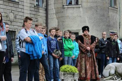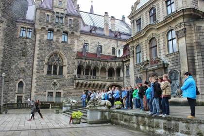 6 maja 2015 roku uczniowie Gimnazjum nr 2 mieli okazję uczestniczyć w niecodziennej lekcji historii "Dotyk historii" na zamku w Mosznej. Grupa 45 uczniów wraz z opiekunami zwiedziła zamek, wysłuchała historii powstania zamku, historii biblioteki zamkowej, ćwiczyła strzelanie z łuku, starodawne techniki piśmiennicze, przymierzała stroje z epoki. Organizatorami wyjazdu byli nauczyciele-bibliotekarze z Gimnazjum nr 2. Wycieczka była bardzo udana, jak widać na zdjęciach, mieliśmy dużo dobrej zabawy.