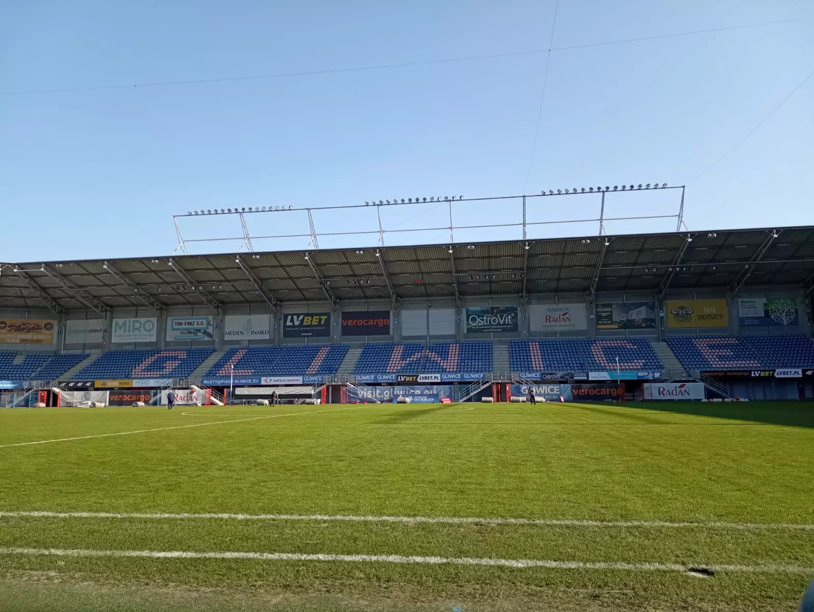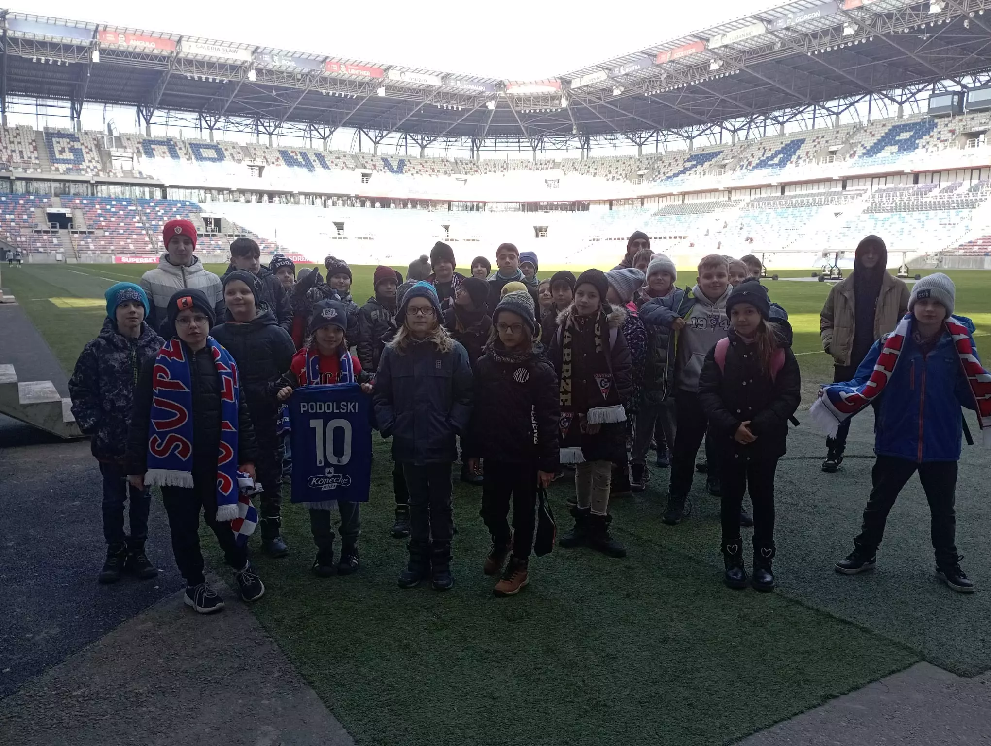 Kolejnym punktem wycieczki było zwiedzanie stadionu Piasta Gliwice. Podczas oprowadzania mieliśmy okazję zajrzeć do szatni zawodników, loży VIP oraz na murawę boiska. Przewodnik opowiadał nam o historii klubu oraz o najważniejszych sukcesach drużyny. Uczniowie byli szczególnie zafascynowani możliwością zobaczenia stadionu z perspektywy piłkarzy wychodzących na mecz.