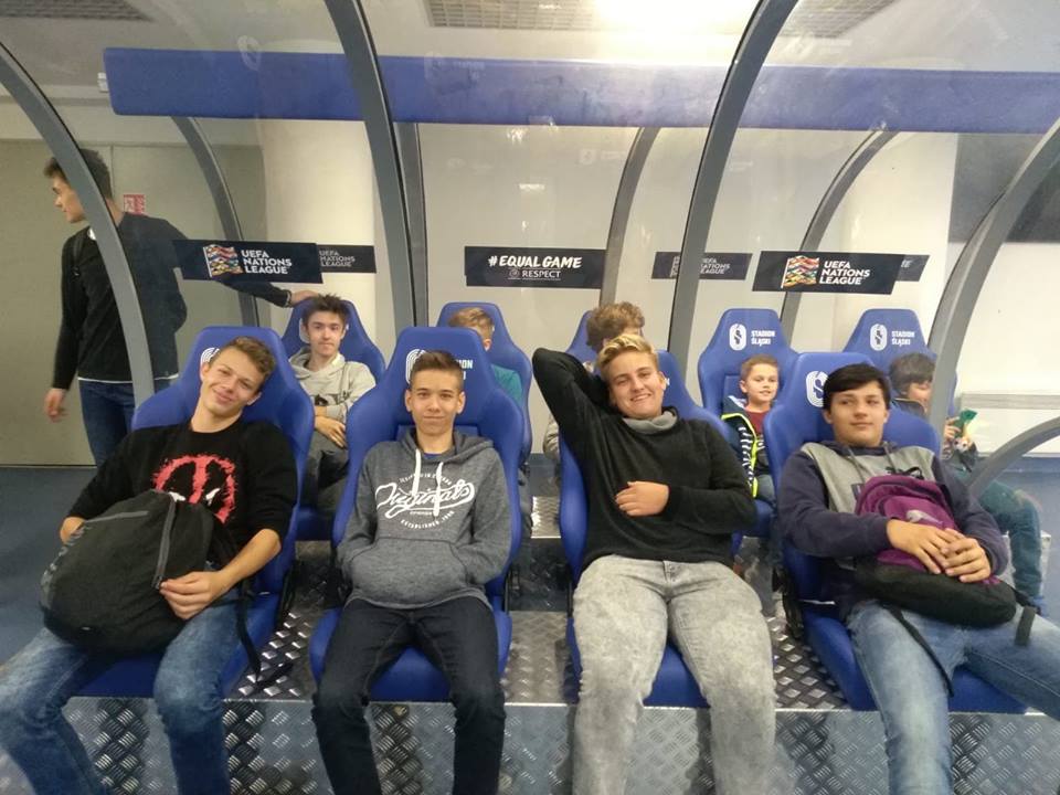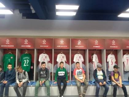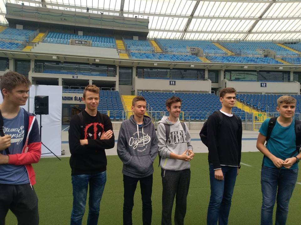 Już po raz drugi uczniowie naszej szkoły uczestniczyli w wycieczce na Stadion Śląski w Chorzowie. Trasa zwiedzania obejmowała m.in. wejście na arenę główną Stadionu, przejście tunelem do szatni reprezentacyjnych, strefy odnowy biologicznej i strefy rozgrzewki. Największą jednak radość sprawiła uczniom możliwość wejścia do celi kibolów i loży dla VIP-ów na Stadionie. W trakcie zwiedzania przewodnik opowiadał szereg ciekawostek dt. historii obiektu. Uczniowie obejrzeli wystawę "Potęga emocji. Stadion Śląska 1956-2017" i płytę boiska z górnych sektorów trybun. Stadion zrobił na wszystkich duże wrażenie. Uczestnicy wycieczki mieli możliwość zakupu pamiątkowego gadżetu ze stadionu. Wszyscy wrócili zadowoleni i z chęcią ponownego wyjazdu na Stadion.