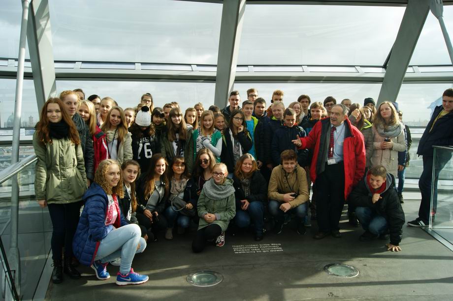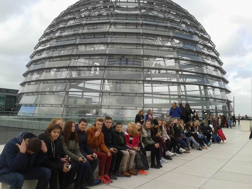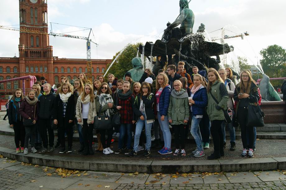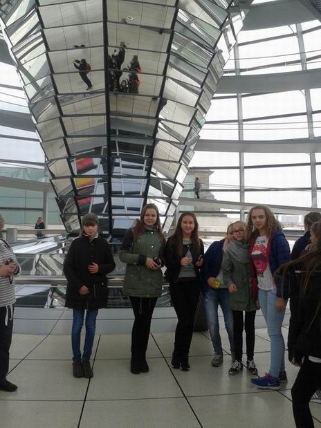 Bardzo wczesnym rankiem, 23 października uczniowie naszego gimnazjum udali się na jednodniową wycieczkę do stolicy Niemiec. Berlin przywitał nas o godzinie 9.30 piękną słoneczną pogodą. Na początku z okien autokaru mogliśmy podziwiać jego najdalsze zakątki, a później udaliśmy się do centrum miasta. W programie wycieczki było m.in. zwiedzanie Aleksanderplatz, Nikolaiviertel - zrekonstruowana starówka Berlina, Marienkirche, spacer aleją Unter den Linden (Dom, Museeninsel, Neue Wache, Pariserplatz, Brama Brandenburska, Reichstag i nowa dzielnica rządowa nad Szprewą. Mur Berliński. Przejazd do zachodniej części Berlina (Gedaechtniskirche, Europa Center) oraz do najnowocześniejszej dzielnicy Potsdamerplatz (Sony Center). Niezapominane wrażenie pozostawiło zwiedzenie kopuły dachu Reichstagu i podziwianie panoramy Berlina. Nowoczesna architektura kopuły i piękne bezchmurne niebo pozwoliły nam na wykonanie ciekawych zdjęć. Kolejnym żelaznym punktem naszej wycieczki był wjazd w zawrotnym tempie na wieżę telewizyjną (Fernsehturm), której wyskość wynosi 368 metrów. Z okien wieży, dzięki doskonałej widoczności, mieliśmy okazje odszukać zwiedzone wcześniej obiekty, a także obserwować lądujące samoloty na berlińskim lotnisku. Stolica Niemiec zachwyciła nas zróżnicowaniem architektury, a także przysmakami, których mogliśmy zakosztować i niepowtarzalną atmosferą. Dla uczestników wycieczki zorganizowany został konkurs fotograficzny „Berlin in meinem Obiektiv”. Zwycięzcami konkursu zostali: