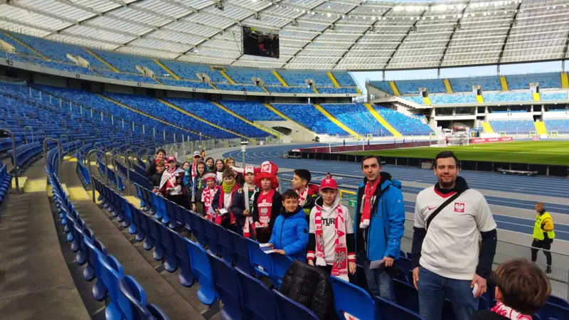 26 marca grupa uczniów z naszej szkoły dopingowała piłkarską reprezentację Polski U-21 na Stadionie Śląskim w Chorzowie. Była to dla nas świetna okazja, by zobaczyć jak wygląda organizacja meczu z bliska, część osób była na takim widowisku po raz pierwszy. Na trybunach głośno i kulturalnie dopingowaliśmy biało-czerwonych. Pomimo niekorzystnego wyniku meczu, wróciliśmy do domów w dobrych humorach.
