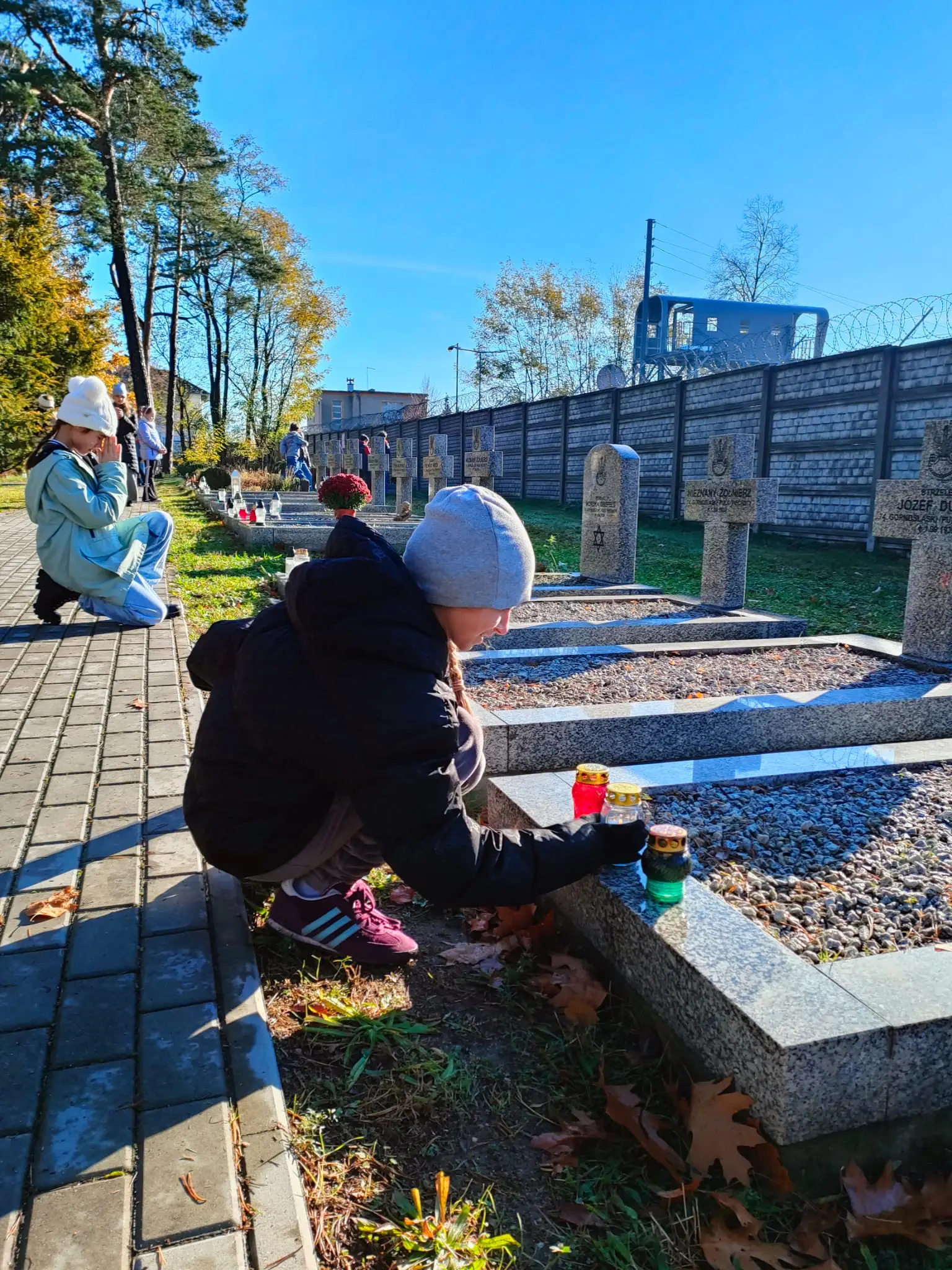W związku ze zbliżającym się Narodowym Świętem Niepodległości, uczniowie klas 4 udali się na cmentarz wojskowy, aby uczcić pamięć poległych żołnierzy, powstańców śląskich oraz wszystkich, którzy oddali życie za wolną Polskę.