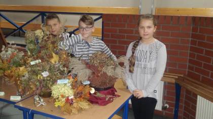 Piękno przyrody jesienią uczniowie przedstawiają wykonując niezwykle barwne i ciekawe kompozycje, prezentując różne techniki układania kwiatów i darów jesieni. W trakcie tych prac uczniowie zapoznają się z metodami konserwowania i zasuszania roślin. Prezentowane bukiety stanowią jedną z wielu aktywnych metod poznawania przyrody.