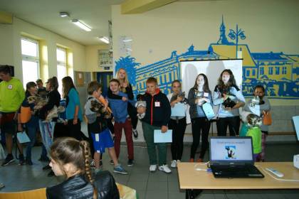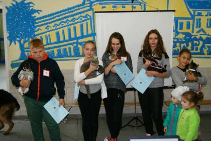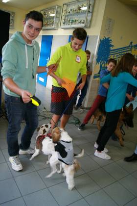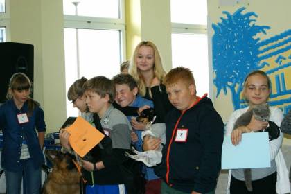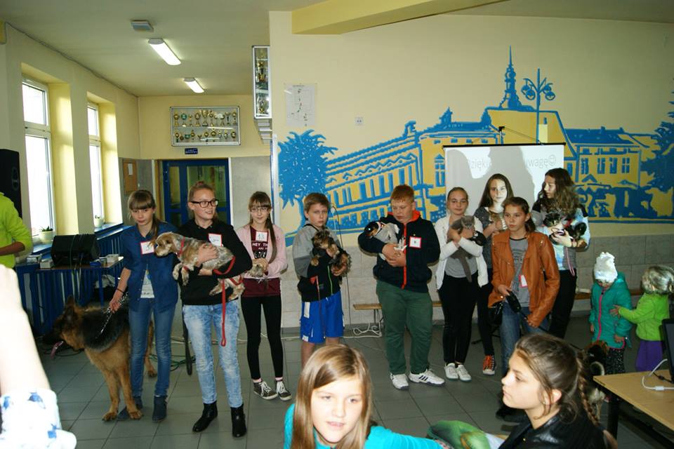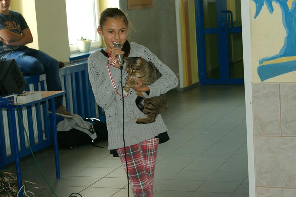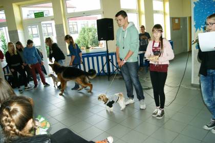 Kolejny raz, czyli po raz trzynasty, w naszej szkole obchodzono w październiku Światowy Dzień Ochrony Praw Zwierząt. Jedną z imprez była wystawa zwierząt zorganizowana przez uczniów klas II w ramach realizacji projektu uczniowskiego. Wystawę uświetniły swoją obecnością 4 koty i 8 psów. Gościem honorowym była barwna papuga Ala. Jak zwykle wszyscy uczestnicy bawili się wspaniale.