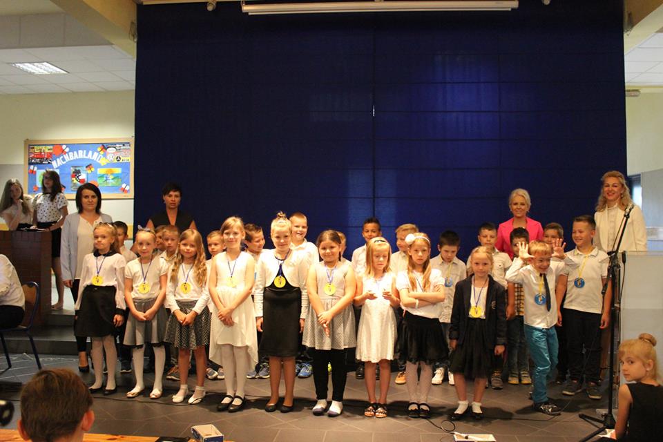 22 czerwca zakończyliśmy rok szkolny 2017/2018. Był to rok wytężonej pracy dla wielu, nie tylko uczniów, ale dyrekcji i nauczycieli, którzy wdrożyli reformę edukacji. Jesteśmy niezmiernie szczęśliwi, że wywiązaliśmy się godnie z powierzonego zadania. Gimnazjaliści z uśmiechem i nostalgią żegnali mury gimnazjum, zaś pierwszoklasiści przeszczęśliwi w komplecie zdali do klasy drugiej szkoły podstawowej, za co zostali odznaczeni medalami. Każda grupa wiekowa odebrała zasłużone świadectwa z paskiem, a rodzice otrzymali listy gratulacyjne. Zostały wręczone prestiżowe statuetki SUPERABSOLWENTA 2018. Cztery osoby zostały uhonorowane tym wyróżnieniem. Dwie osoby otrzymały tytuł "Wybitny Naukowiec, Artysta i Lingwista" i dwie osoby "Wybitny Sportowiec". Wręczone zostało również stypendium naukowe i stypendia sportowe. Uczniowie klas pierwszych zaprezentowali program artystyczny na pierwszej części zakończenia , zaś na drugiej części przedstawiciele klas trzecich humorystycznie i zabawowo pożegnali szkołę. Samorząd Uczniowski Szkoły Podstawowej nr 2 wyróżnił również nauczycieli, statuetkami "Profesorek" 2018 w określonej kategorii.