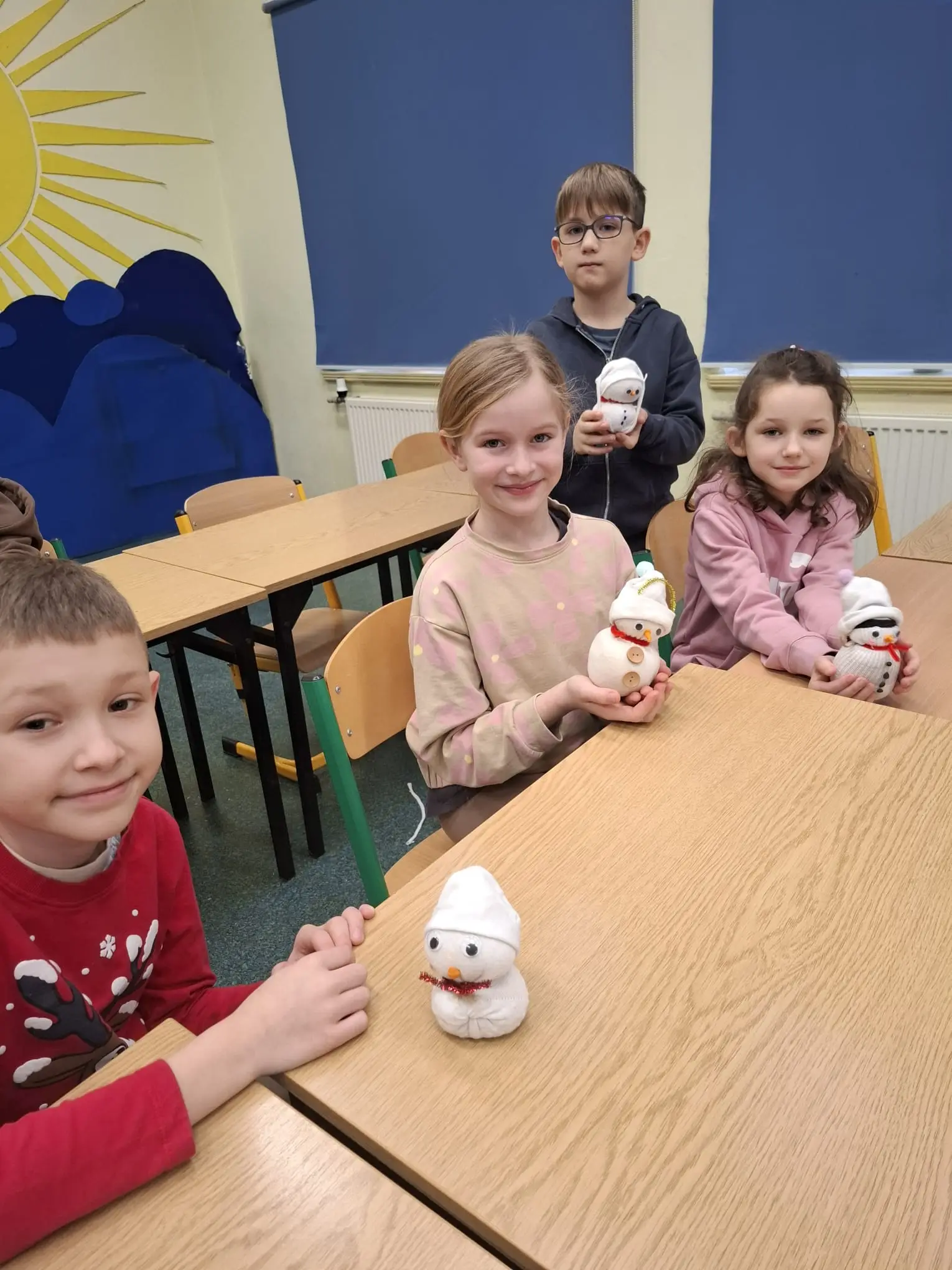 Dziś uczniowie klasy 1B tworzyli bałwanki ze skarpetek. Było dużo śmiechu, kreatywnej zabawy i małych rączek pełnych pomysłów. Efekty wyszły przepiękne i wyjątkowe!