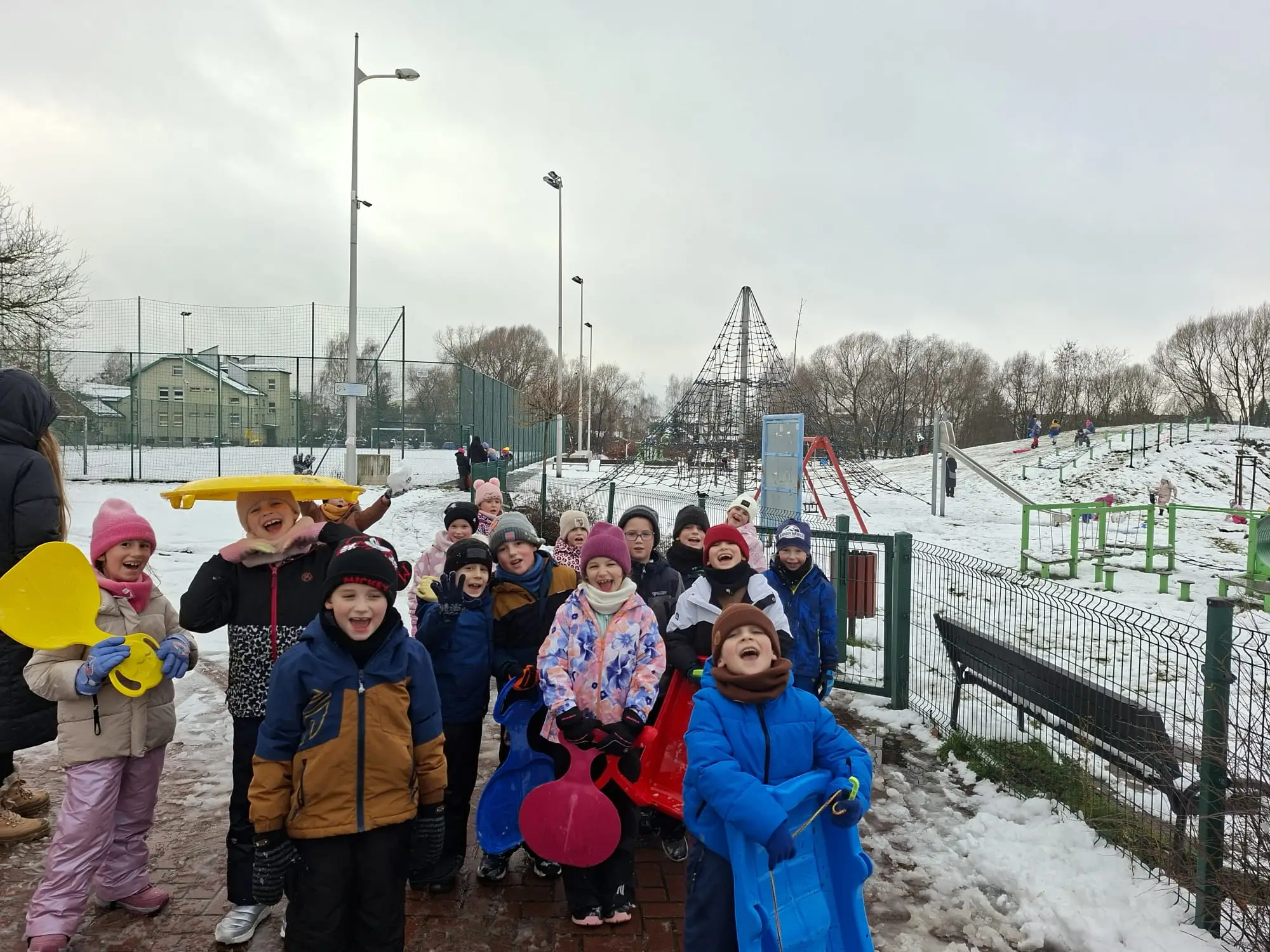 Dzisiejszy dzień upłynął najmłodszym uczniom naszej szkoły w prawdziwie zimowej atmosferze! Klasy 1a i 1b wykorzystały piękną aurę, by aktywnie spędzić czas na świeżym powietrzu. Dzieci z radością bawiły się na śniegu, zjeżdżały z górki na sankach, lepiły bałwany i korzystały ze wszystkiego, co oferuje zimowa pogoda.